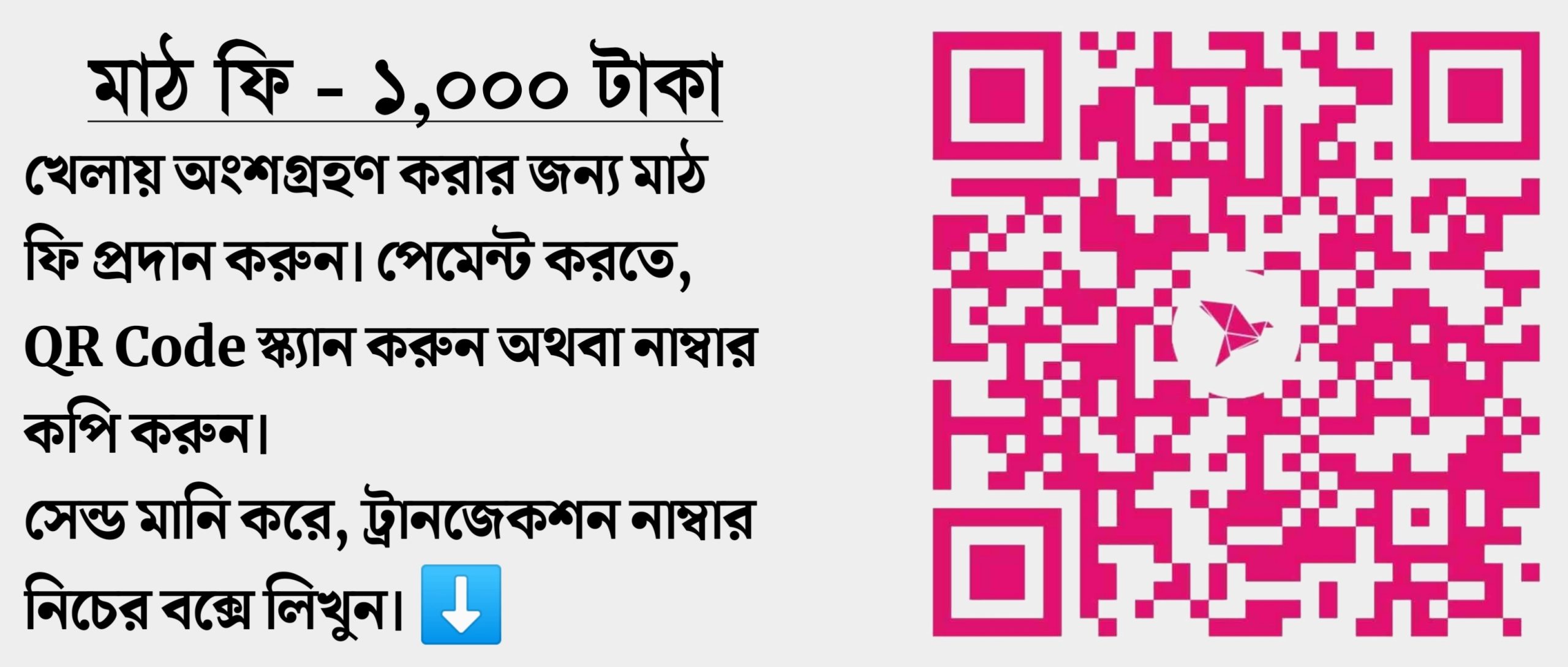 Please enable JavaScript in your browser to complete this form.Please enable JavaScript in your browser to complete this form. - Step 1 of 2 পেমেন্ট নোটিশ নোটঃ খেলায় অংশগ্রহণ করার জন্য অবশ্যই অনলাইন রেজিস্ট্রেশন করুন, সঠিক তথ্য প্রদান করিবেন, ফর্ম পূরণ করার সময় সম্পূর্ণ বাংলায় লিখবেন, অন্যথায় আপনার টিম বাতিল করা হবে, ধন্যবাদ।আইটি বিভাগ মধুপুর শহীদ স্মৃতি অ্যালামনাই এসোসিয়েশন টিম লিডারের সম্পূর্ণ নামঃ * টিম লিডারের এসএসসি ব্যাচঃ *সিলেক্ট করুন২০০০২০০১২০০৩২০০৪২০০৫২০০৬২০০৭২০০৮২০০৯২০১০২০১১২০১২২০১৩২০১৪২০১৫২০১৬২০১৭২০১৮২০১৯২০২০২০২১২০২২২০২৩২০২৪২০২৫টিম লিডারের বিভাগঃ *বিভাগ সিলেক্ট করুনবিজ্ঞানমানবিকব্যবসায় শিক্ষাইমেইল *আপনার টিম/গ্রুপ নামঃ * আপনার খেলোয়াড় দের নাম ও এসএসসি ব্যাচঃ টিম লিডার সহ (১১ জন) *আপনার টিমের লগো দিনঃ Click or drag a file to this area to upload. টিম লিডারের ফোন নাম্বারঃ *খেলার নীতিমালা সম্পর্কে জানুন (PDF) PDF File ডাউনলোড করুন অথবা View করতে ডাউনলোড বাটনে ক্লিক করুন। ⬇️ Next bkash: 01401996674 - (Tap to Copy) বিকাশ ট্রানজেকশন (TrxID) আইডিঃ *উপরের সব তথ্য গুলো সঠিক, এবং আপনাদের খেলার নীতিমালার বিষয়ে আমি অবগত। পরবর্তীতে নিয়ম ভঙ্গ করলে আমার বিরুদ্ধে যেই একশন নেওয়া হবে আমি মাথা পেতে নিবো। *সমস্ত শর্তাবলী মেনে নিলামসাবমিট